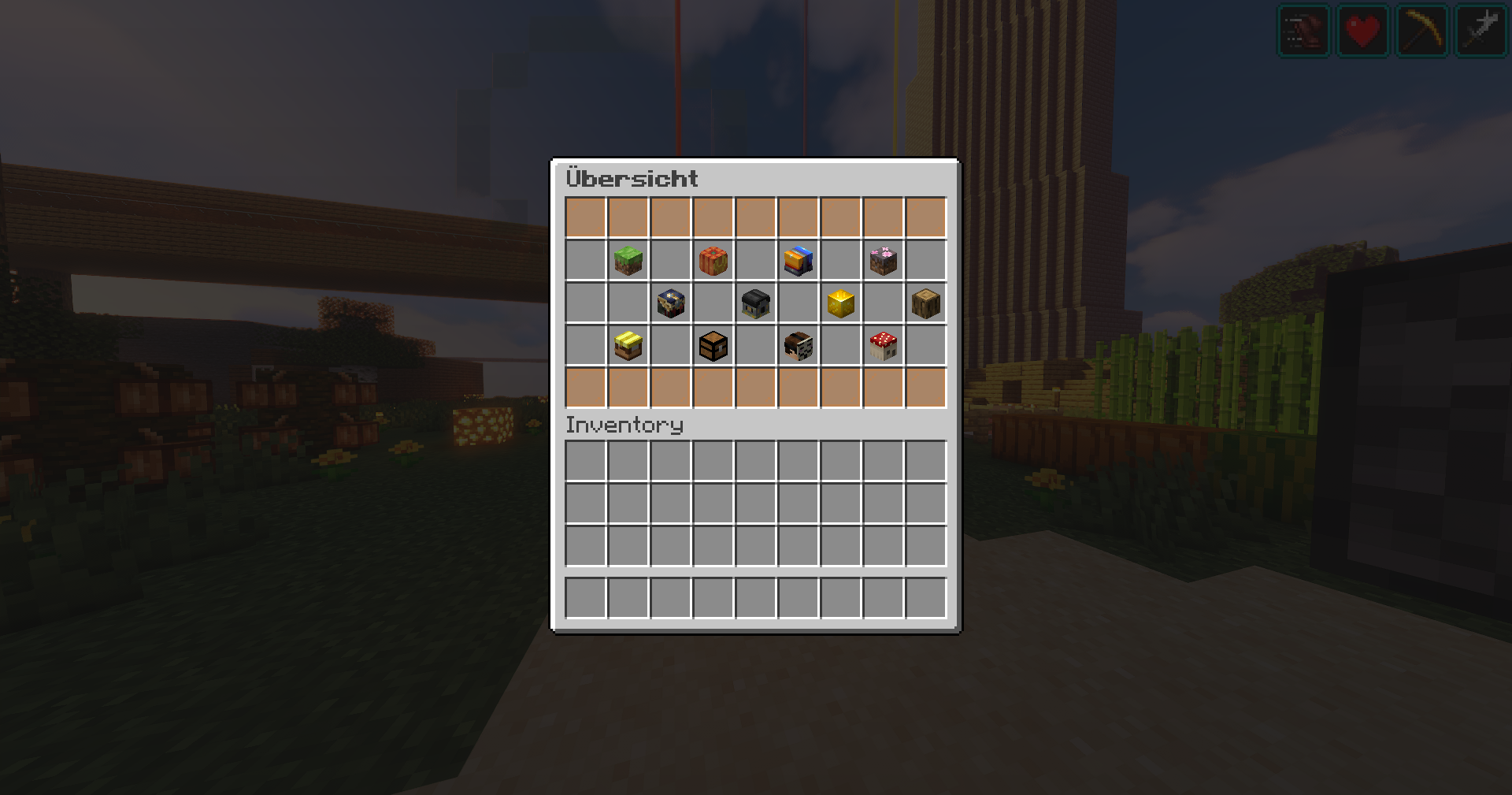 Vorherige Stufe + Sand, Kies, Ton, Erde, Redstoneerz |