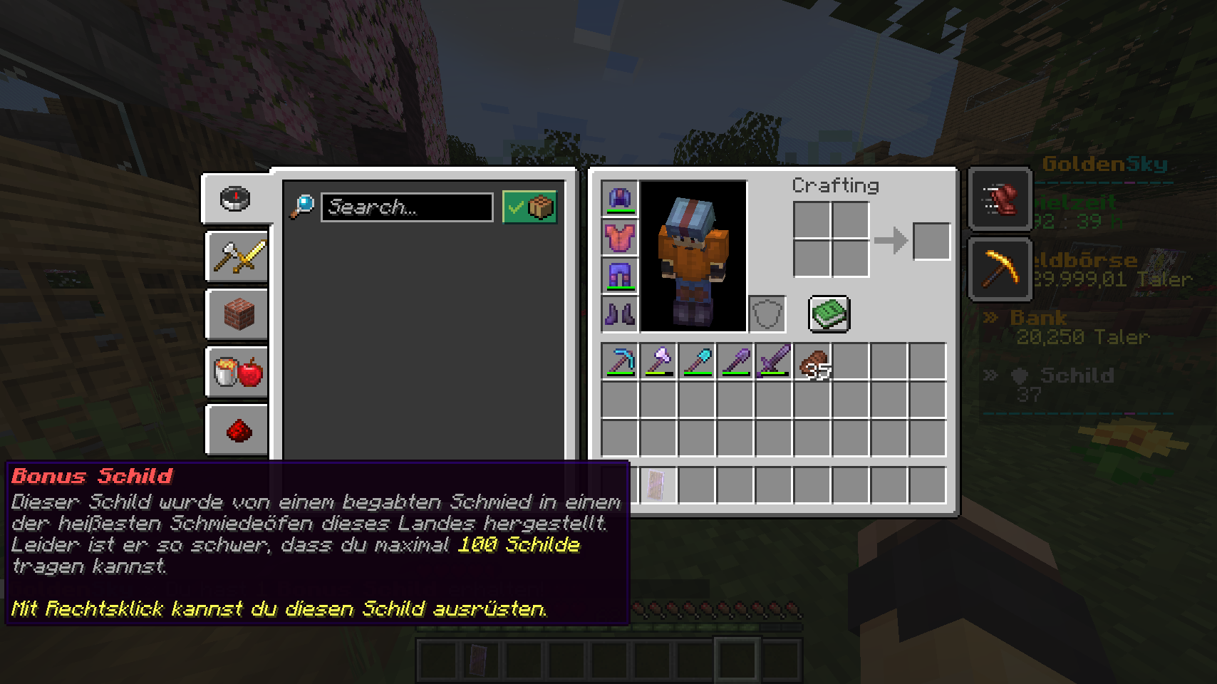 Schilde lassen sich auf verschiedene, spannende Arten ergattern: Sie können in Schatzkisten verborgen sein, als Belohnung bei Events gewonnen oder im AdminShop gegen Taler eingetauscht werden. Ein Spieler kann dabei zwischen 0 und 100 Schilden verfügen. Jedes einzelne Schild absorbiert dauerhaft 0,7 % des eingehenden Schadens durch feindliche Mobs. Sind die Schilde vollständig aufgerüstet, schützt der Spieler mit 100 Schilden insgesamt vor 70 % des Mobs-Schadens. Die aktuelle Anzahl an Schilden ist stets im rechten Scoreboard sichtbar, sodass du deinen Fortschritt jederzeit im Blick hast.