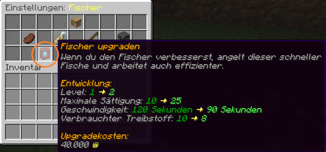 Minenarbeiter, Fischer: Schmelzofen -> Gefarmte Materialien werden automatisch zur gebratenen Form umgewandelt.